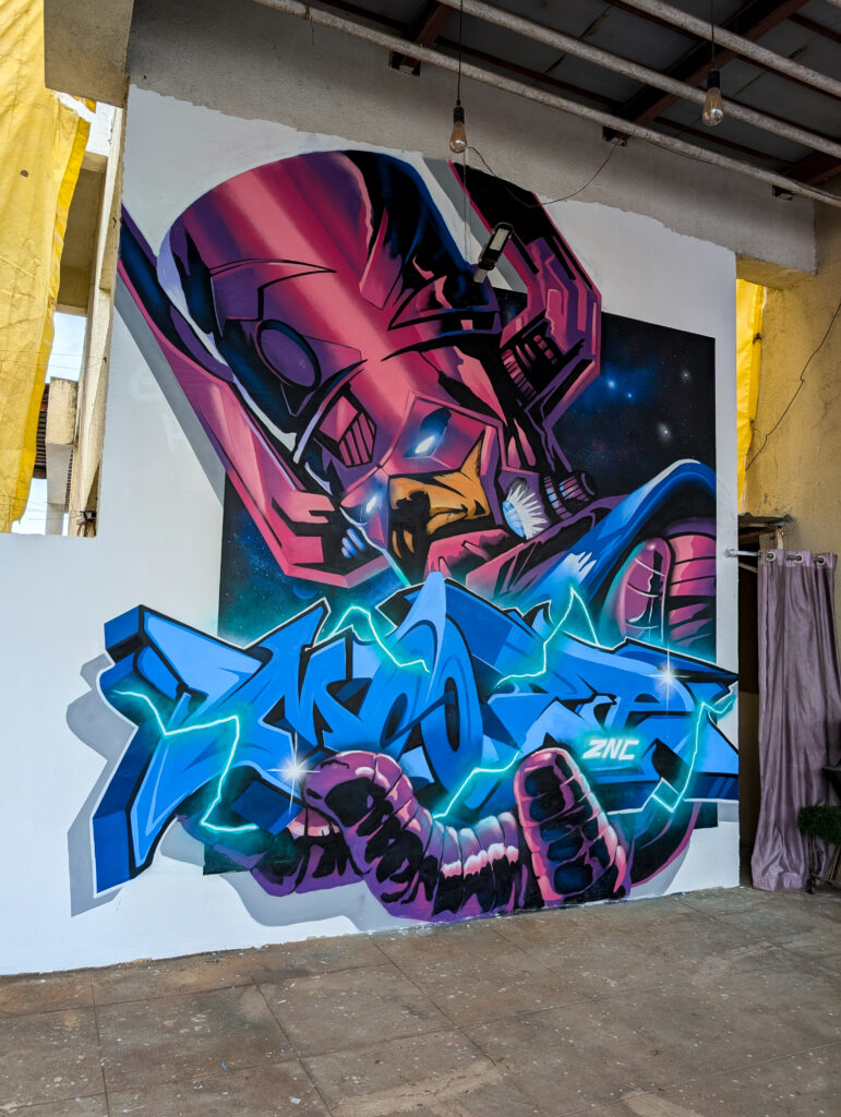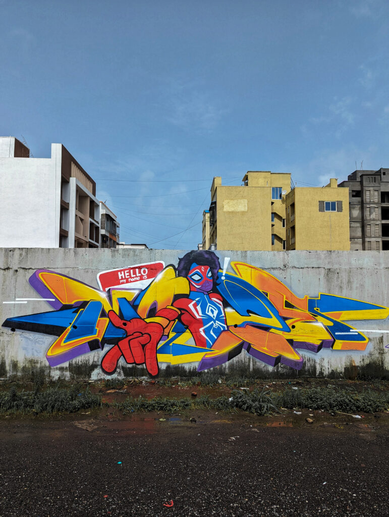 But this conversation isn’t always welcome. Graffiti comes with risk. In India, however, the lines are blurrier than in Western countries. “People are really not aware about graffiti,” he notes. Passersby often ask if he’s being paid. When he explains he’s doing it for the love of it, they either think he’s foolish or lying.