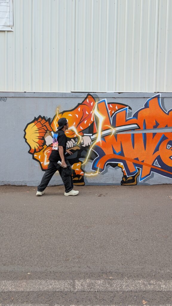 Progress in an art form that is inherently temporary isn’t measured in preserved canvases. It’s measured in satisfaction and personal growth. For Mooze, a major turning point came when he painted a 25-foot-high Martian Manhunter. “Before that, I had never approached something that big,” he admits. The success of that massive piece gave him the confidence to push his skills further, tackling a hyper-realistic 3D turtle in Vashi next. Those projects taught him new techniques for handling spray paint, creating fades and blends that he then incorporated back into his letter-based pieces.