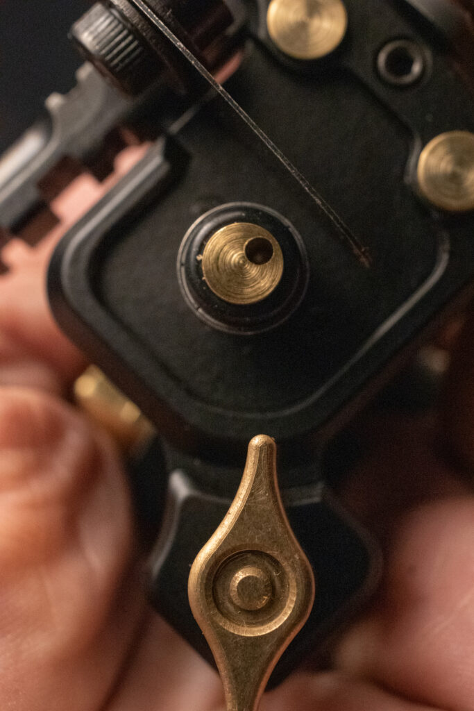 He builds most of his machines using either brass or aluminum. Aluminum is incredibly lightweight, but it transfers a lot of harsh vibration directly into the artist’s hand. Brass is much heavier, but it absorbs that vibration.